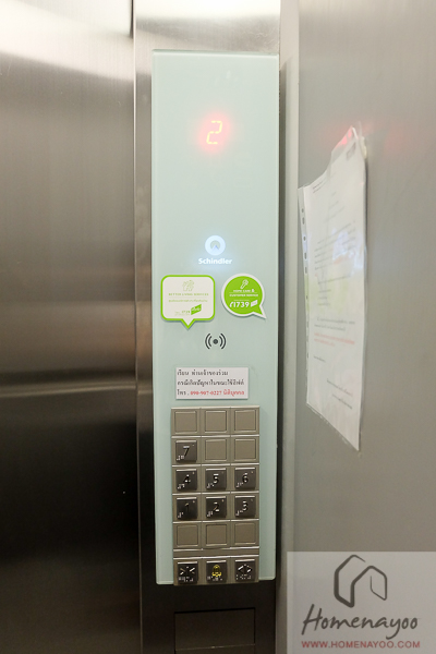 หันมาทางซ้ายมือเป็นจเจอโถงลิฟต์โดยสารซึ่งมีอยู่เพียง 1 ตัว อัตราส่วนลิฟต์ต่ออาคาร 78 ห้องต่อลิฟต์ 1 ตัว และตู้จดหมาย ติดกับตู้จดหมายก็เป็นบันไดหลักของอาคารค่ะ