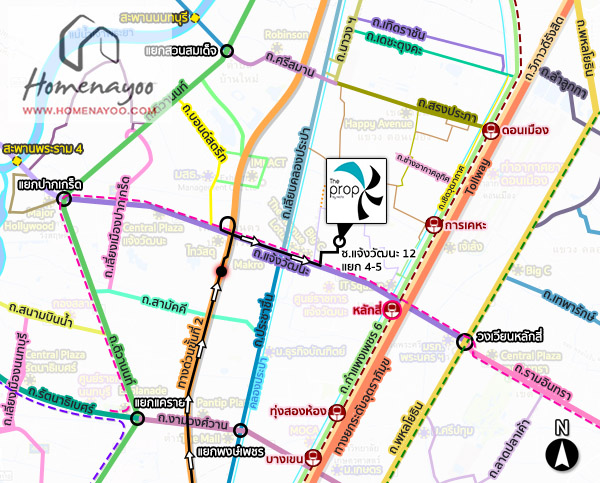 การเดินทางเราเริ่มจาก ทางด่วนขั้นที่ 2 ทางออก น.2-11 ถ.แจ้งวัฒนะ มุ่งหน้าไปหลักสี่ ⇒ ถ.แจ้งวัฒนะ ⇒ ซ.แจ้งวัฒนะ 12 ⇒ ซ.แจ้งวัฒนะ 12 แยก 4 ⇒ ซ.แจ้งวัฒนะ 12 แยก 4-5 ตรงไปอีก 90 ม.ถึงโครงการเดอะพรอพ คอนโด แจ้งวัฒนะ