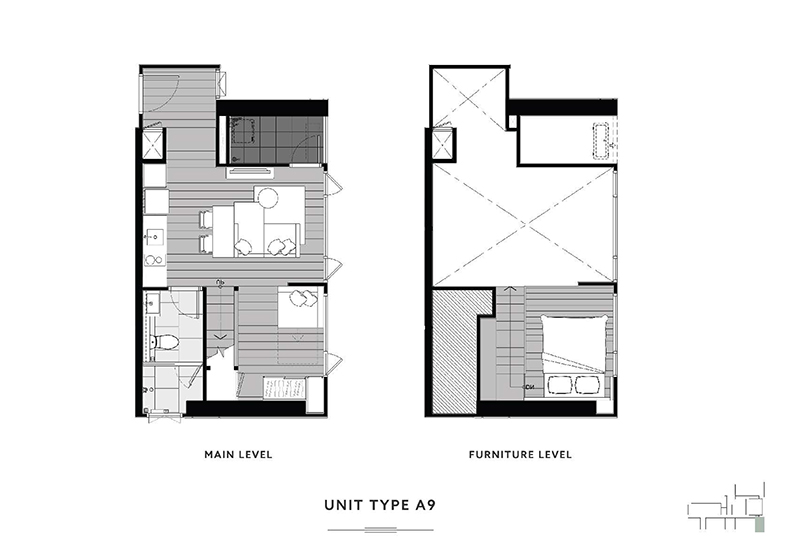โดยห้องแบบ Loft นี้จะเป็นห้องที่เน้นฝ้าเพดานสูง ทำให้มีพื้นที่สำหรับ Split ชั้นห้องนอนแยกเป็นชั้นลอยได้ค่ะ จากแปลนของห้องนี้เมื่อเ้ขาไปในห้องจะเจอกับพื้นที่ส่วนห้องครัวและห้องทานอาหารทางขวามือ ส่วนพื้นที่ฝั่งซ้ายมือเป็นห้องน้ำ ถัดเข้าไปด้านในจะเป็นห้องนั่งเล่นฝ้าเพดานสูง สำหรับห้องนี้จะมีความสูงฝ้าเพดานอยู่ที่ 4.4 เมตร จากห้องนั่งเล่นจะมีประตูบานใหญ่เชื่อมออกไปยังระเบียงภายนอก ส่วนห้องนอนจะมีบันไดเชื่อมขึ้นไปบนชั้นลอยค่ะ