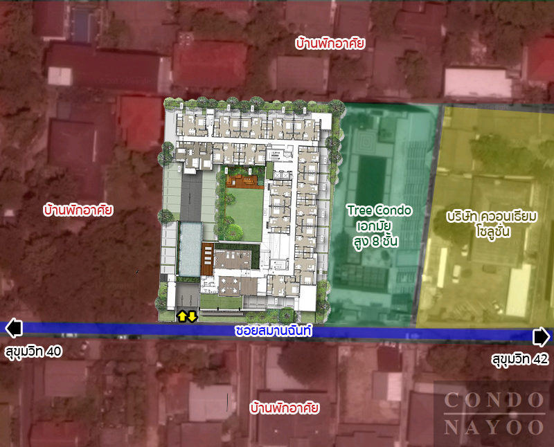 โครงการที่อยู่ติดกันคือ Tree Condo สูง 8 ชั้น