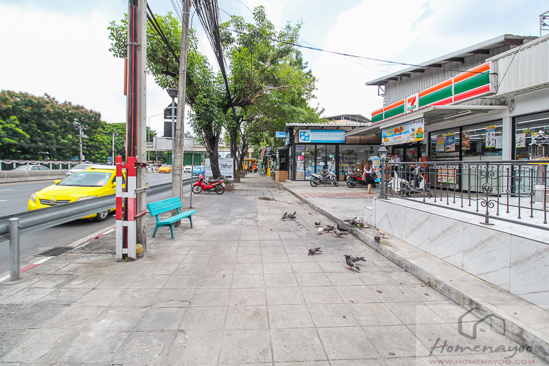 ผมจะพาเดินตามทางเท้ามุ่งหน้าไปทางถนนวิภาวดีว่ามีอะไรบ้าง ติดกับรั้วโครงการเป็นธนาคารไทยพาณิชย์