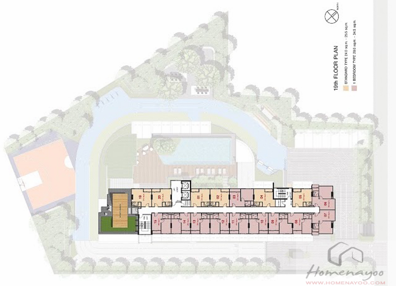 ชั้น 19 ห้องพักจะเหลือ 17 ยูนิต เนื่องจากส่วนด้านหลังเป็นส่วนระยะร่นของอาคารครับ จึงทำเป็นจุดชมวิวมาไว้ให้ ตำแหน่ง 01, 02, 04, 05, 19, 20 จะเป็นห้อง Studio ที่เหลือจะเป็นห้อง 1 Bed ทั้งหมดครับ