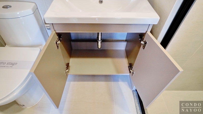 ด้านล่างมีตู้เก็บของให้ 1 ตู้ เหมาะสำหรับทำเป็นตู้ Stock ของใช้ในห้องน้ำ