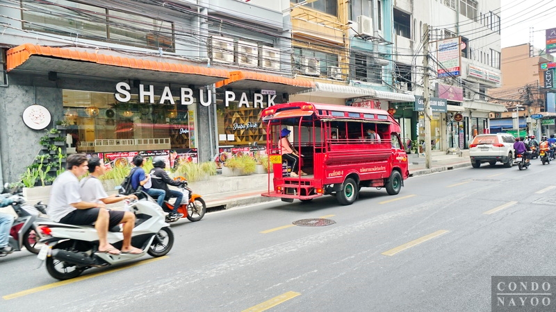 ใช้นั่งไปตลาดห้วยขวาง เพื่อหาของกินอร่อย ๆ กันได้ หรือจะนั่งไปยังสถานที่ต่าง ๆ ก็เลือกใช้งานได้ตามสะดวก ส่วนคิวมอเตอร์ไซค์รับจ้าง จะมีอยู่ใกล้ ๆ กับโครงการ จะยืนเรียกที่หน้าโครงการก็ได้ มีรถผ่านตลอดทั้งวัน