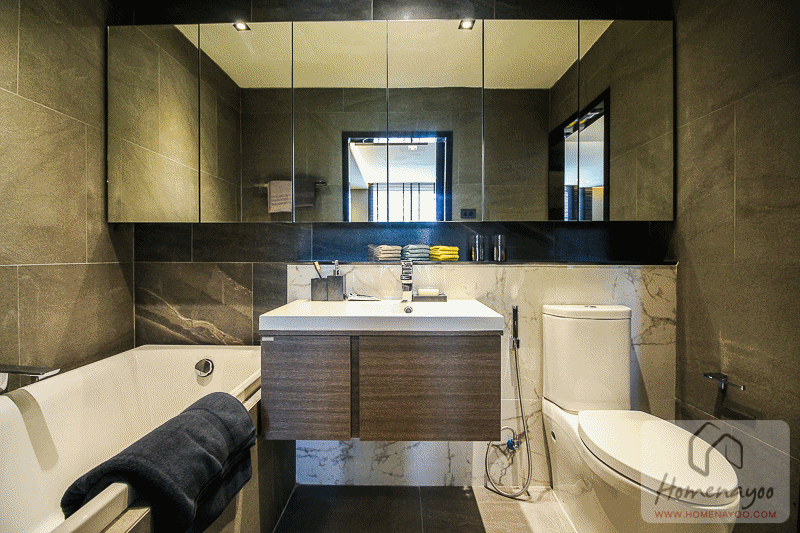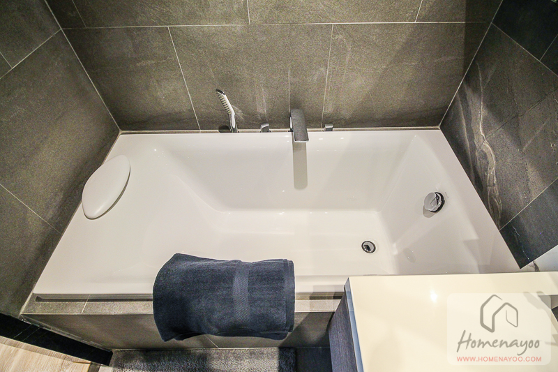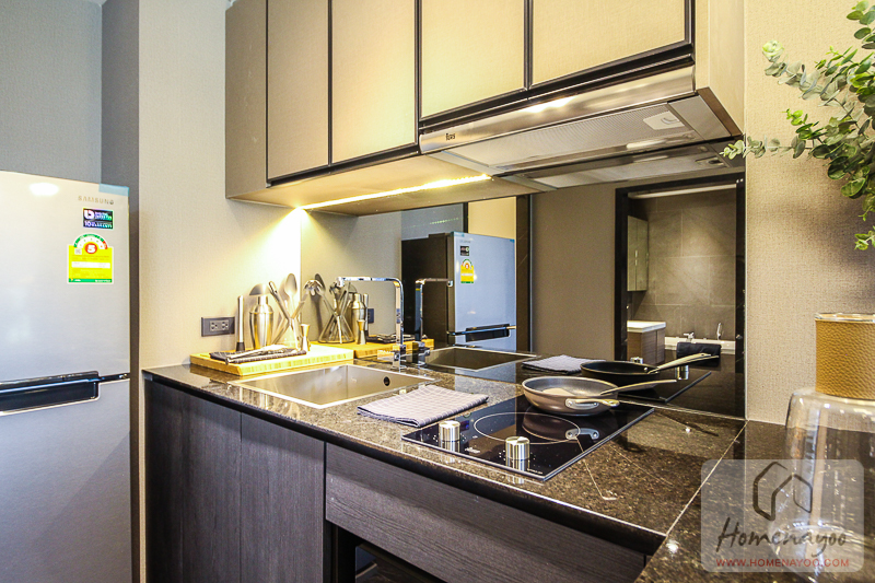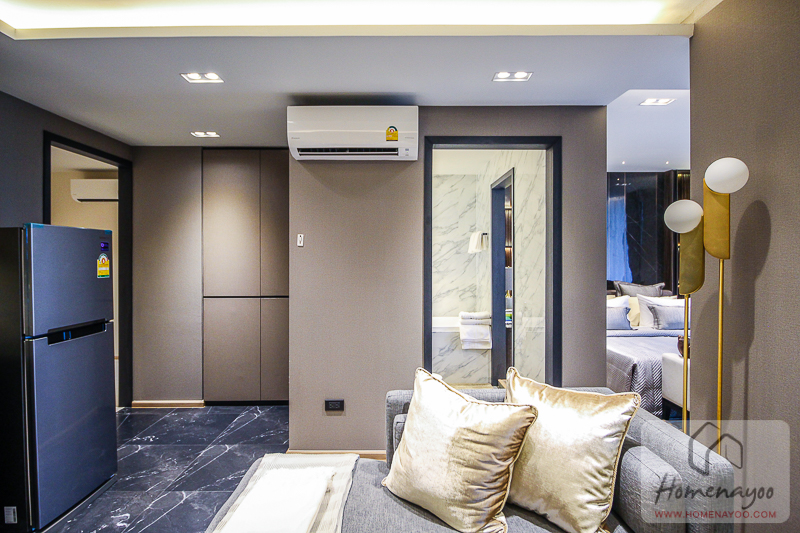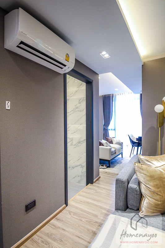 การออกแบบโครงการและวัสดุ – ตัวห้องขายแบบ Fully Furnished โดยตัวห้องจะมาพร้อมกับเฟอร์นิเจอร์บิวท์อิน, ชุดครัว, ชุดสุขภัณฑ์, ราวบังม่าน, เฟอร์นิเจอร์ลอยตัว, ระบบ Home Automation และเครื่องปรับอากาศ ซึ่งสเป็ควัสดุมาสวยและถ้าเทียบกับราคาและทำเลกับคอนโดอื่นๆในโซนเดียวกันก็ถือว่าอยู่ในเกณฑ์ค่อนข้างดีและมีความใส่ใจในรายละเอียด อย่างเช่นห้องนอน 1 ห้องนอนจะมีอ่างอาบน้ำมาให้ ซึ่งอันนี้จัดว่าหายากมากในคอนโดเซกเมนต์เดียวกัน และเป็นจุดขายในการปล่อยเช่าได้ดีค่ะ