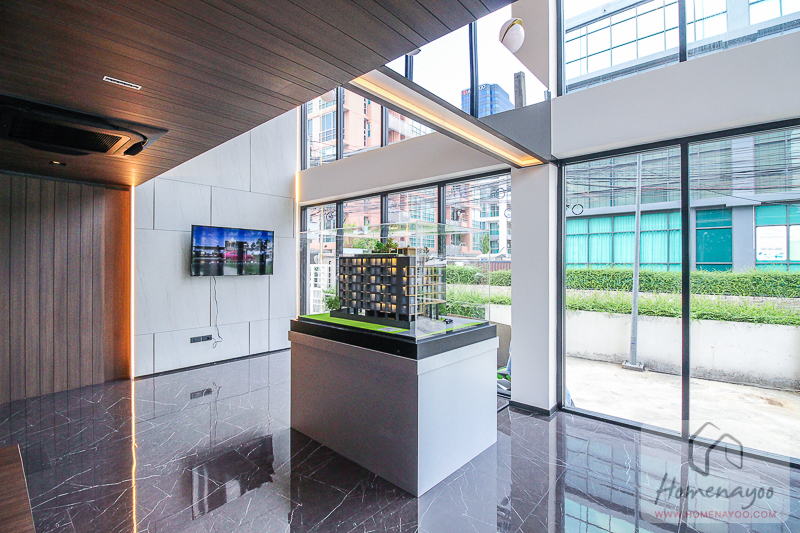 และภายในสำนักงานขายจะมีโมเดลโครงการพร้อมหน้าจอ Presentation ของโครงการอยู่ รายละเอียดบรรยากาศรอบๆ, ตัวโครงการและห้องตัวอย่างจะเป็นอย่างไร ไปชมกันเลยค่ะ