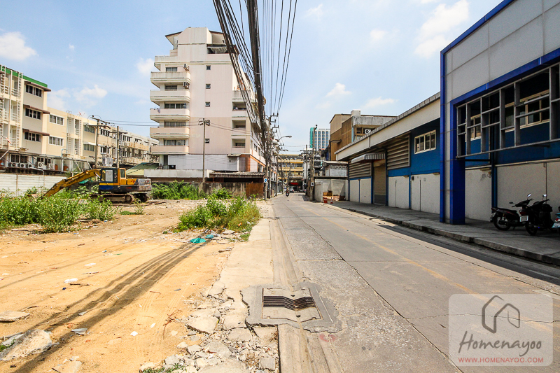 จากปากซอยรัชดา 19 มองเข้าไปด้านในก็จะเห็นที่ดินโครงการ The Teak รัชดา 19 แล้วค่ะ โดยที่ดินโครงการจะอยู่ติดกับสำนักงานขายโครงการเลย