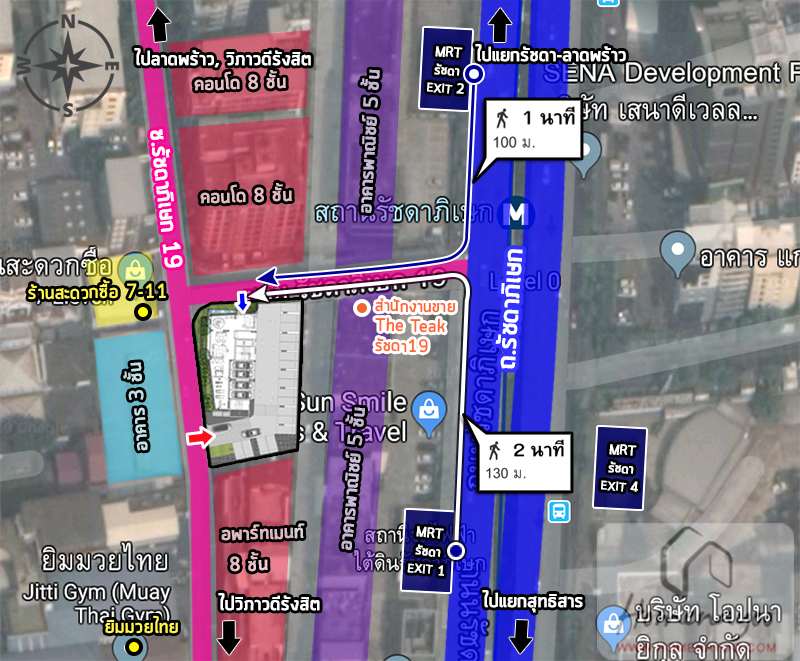 วันนี้เรามีภาพการเดินทางโดยรถมาให้ชมกันค่ะ เส้นทางการเดินทางตามลูกศรแดง โดยเริ่มเดินทางจาก แยกพระราม 9 → ถนนรัชดาภิเษก → เลี้ยวขวาเข้าซอยรัชดาภิเษก 19 → เข้าไปประมาณ 60 ม.จะเจอโครงการ The Teak รัชดา 19 อยู่ทางฝั่งซ้ายมือแล้วค่ะ