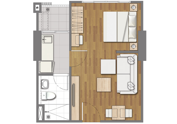 | ลักษณะห้องและขนาดห้อง | – Studio / 22-29.50 ตร.ม. – 1 Bed / 35 ตร.ม. – 2 Bed / 58-63 ตร.ม. |