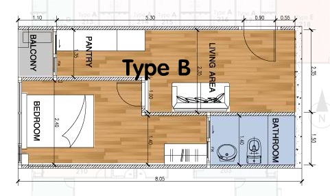 | ลักษณะห้องและขนาดห้อง | 1 Bed 27 – 35 ตร.ม. |