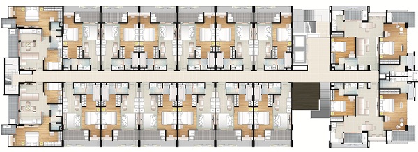 | ลักษณะห้องและขนาดห้อง | 1 Bed / 39.85 ตร.ม. 2 Bed / 87.30 ตร.ม. |