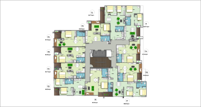 • 2 Bedrooms พื้นที่ 56-69 ตารางเมตร
