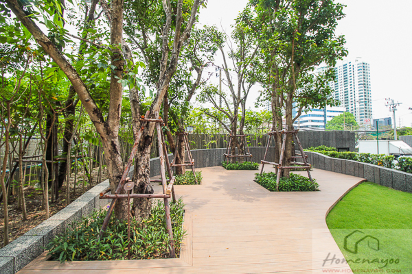 สวนหย่อมด้านหน้าโครงการ ทำเป็นเนินสูงต่ำ
