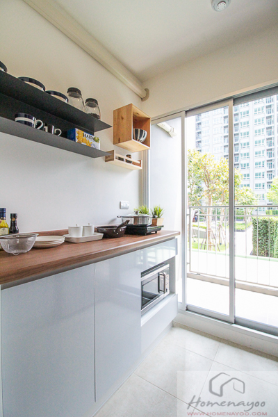 ตู้เป็นบานเปิด 2 บาน และลิ้นชั้น 2 อัน ไม่มี Hob&Hood ซื้อเตาไฟฟ้ามาใช้แทนก็สะดวกดีครับ มี Pantry เตรียมอาหารกว้างดีครับ