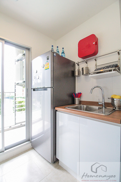 อีกฝั่งเป็น Sink ล้างจาน และพื้นที่วางตู้เย็น