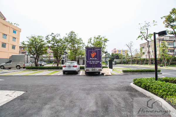 ผ่านไม้กระดกเข้ามาจะเจอถนนภายในโครงการ ตรงไปเข้าที่จอดรถ เลี้ยวซ้ายไปจุด Drop Off