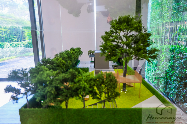 การออกแบบโครงการและวัสดุ – ตัวอาคารออกแบบมาเต็มพื้นที่ดินขนาด 3 งาน 95 วา จำนวน 1 อาคาร ชั้นจอดรถจัดไว้ที่ชั้นใต้ดิน 2 ชั้น เลี้ยวรถเข้าโครงการมาก็เป็นทางลาดลงชั้นใต้ดินเลย ส่วนชั้นพักอาศัยเริ่มตั้งแต่ชั้น 1 – 8 ส่วนกลางจัดไว้ที่ชั้นดาดฟ้าครับ โครงการนี้ใช้สถาปนิก A49 ออกแบบมาในแนวคิดที่ให้คุณได้ใช้ชีวิตอยู่ท่ามกลางธรรมชาติ ที่ไม่ใช่แค่พื้นที่ส่วนกลาง มีการใช้ภูมิสถาปัตย์ตกแต่งในส่วนของตัวอาคารชั้นพักอาศัย ให้ลูกบ้านได้สัมผัสธรรมชาติได้
