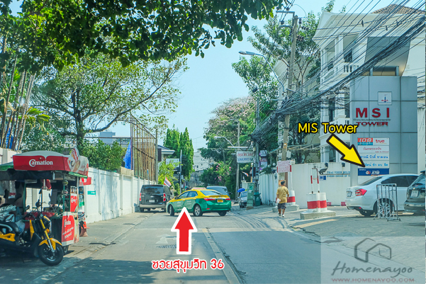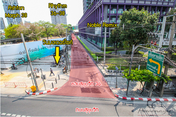 ปากซอยสุขุมวิท 36 ขวามือเป็นโครงการ Noble Remix