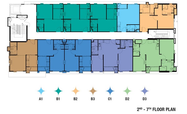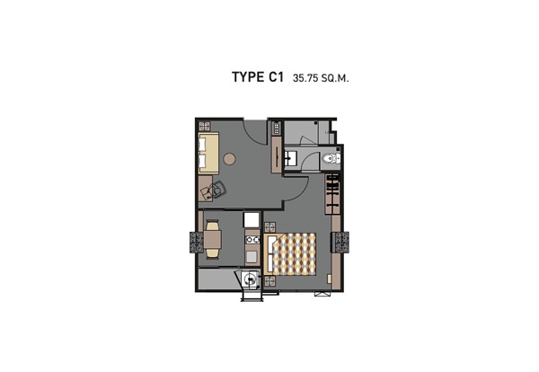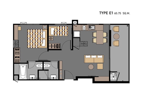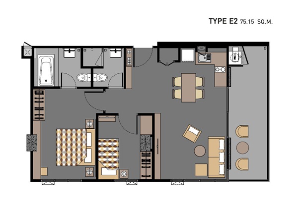 | ลักษณะห้องและขนาดห้อง | Studio / 26 sq.m. 1 Bed / 30.95 – 35.75 sq.m. 2 Bed / 50.30 – 75.15 sq.m. |