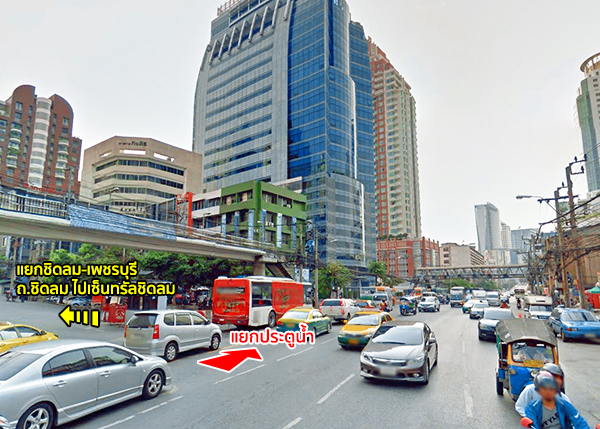ตรงไปเรื่อย ๆ ผ่านแยกวิทยุ-เพชรบุรี ถ้าเลี้ยวซ้ายจะไปโผล่ ถ.เพลินจิต และ Central Embassy
