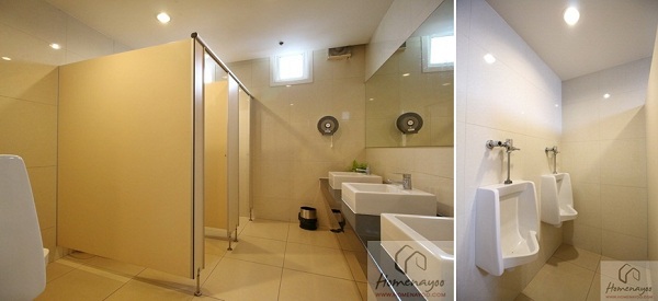 ห้องน้ำชาย แยกส่วนโถสุขภัณฑ์, เคาน์เตอร์อ่าง 3 ชุด และห้องน้ำ 2 ห้อง