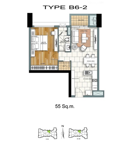 แบบห้อง Studio ขนาด 38 – 42 ตร.ม. :