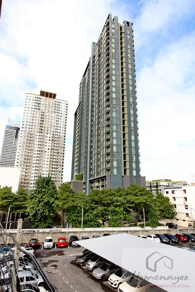 เงยหน้ามองบน ชมตัวอาคาร Villa Sathorn มุมจากด้านหน้าถนนใหญ่