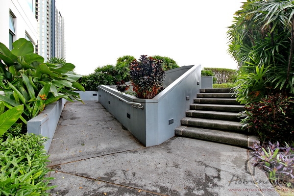 ฟุตบาทช่วงระหว่างรถไฟฟ้าไปยังโครงการ กว้างขวาง สะอาด เดินสะดวก