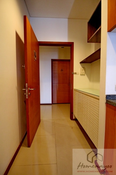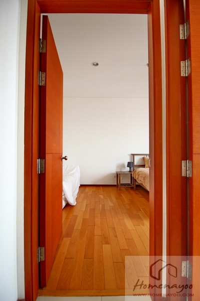 ประตูด้านซ้ายคือห้องนอนหลัก ห้องตรงกลางคือห้องนอนรอง และทางขวาคือห้องน้ำส่วนกลาง