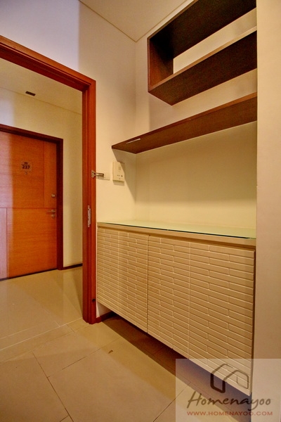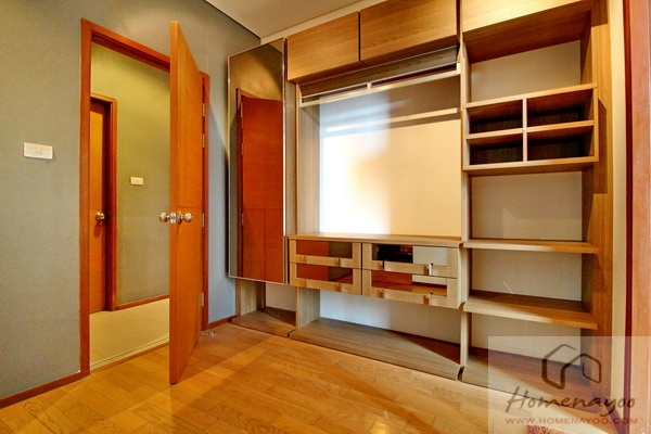 ตรงมุมห้องนี้บิลท์อินเป็นชั้นวางของ แต่ตามตำแหน่งแล้วน่าจะเหมาะสำหรับบิวท์หรือวางเป็นตู้เสื้อผ้ามากกว่าเนื่องจากมุมนี้อยู่ใกล้กับทางเข้าห้องน้ำ