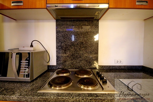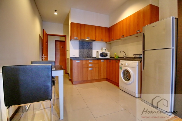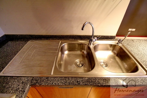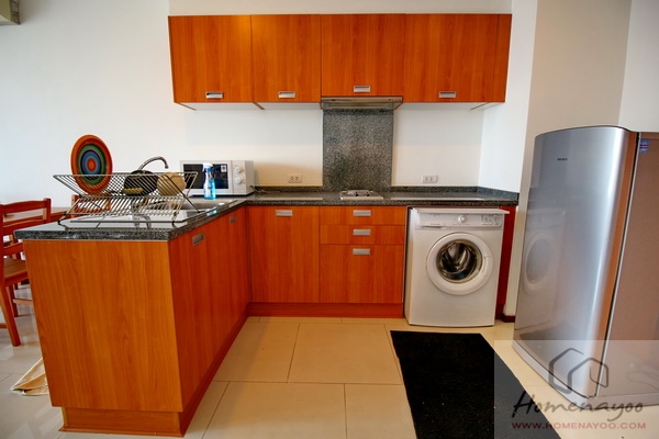 ด้านข้างเว้นช่องสำหรับวางตู้เย็น และมีห้องสำหรับวางเครื่องซักผ้า